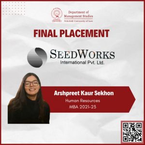 Hearty Congratulations to Arshpreet Kaur sekhon for getting placed in Seedworks International Pvt. Ltd. DoMS NALSAR (Business School of NALSAR) wishes her all the success!