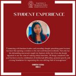 “Reflecting on my journey at DoMS NALSAR, I’m filled with gratitude. It’s more than a place of learning; it’s a vibrant community where academia and extracurricular activities blend seamlessly. The curriculum and experienced faculty foster our holistic development, shaping us into well-rounded individuals. The campus fosters camaraderie, making it easy to form deep bonds with fellow students. The balance between academic rigour and vibrant campus life is a hallmark of my experience here. The competitive atmosphere pushes us to strive for excellence and emerge as leaders. Beyond academics, DoMS NALSAR embraces diversity and fosters connections. Participating in clubs and initiatives has broadened my horizons and contributed to my growth. Looking back, I feel pride in my transformation. From a newcomer to an integral part of this dynamic community, DoMS NALSAR has shaped my identity. The memories, lessons, and friendships will always hold a special place in my heart. My time at DoMS NALSAR has been transformative. It’s a home away from home, leaving an indelible mark on my journey of growth and self-discovery.”