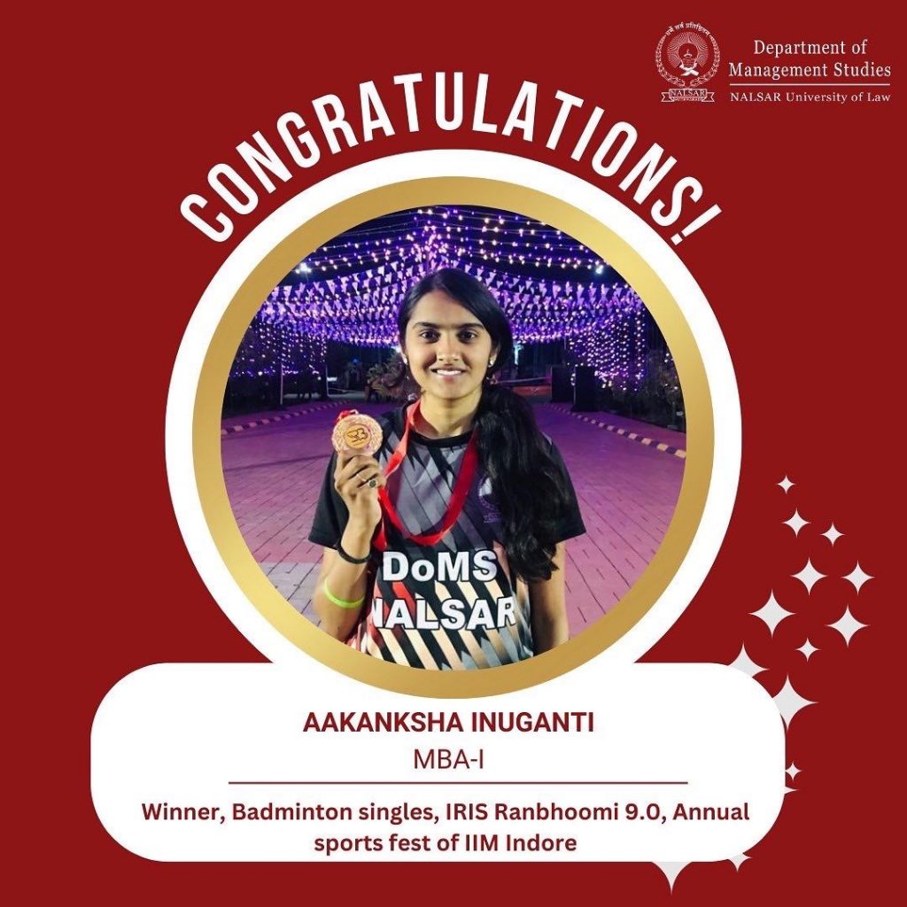 Aakanksha Inuganti, MBA-I won Women’s Singles in Badminton.